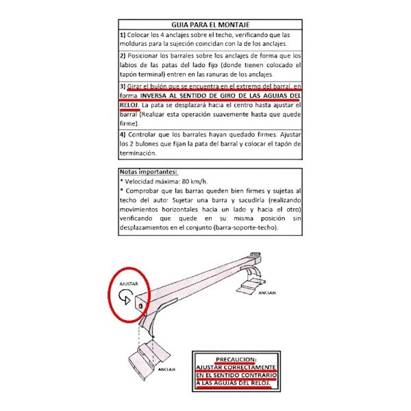 - Contenido: 2 Barras, 4 Anclajes, 4 tapas plásticas e instructivo de colocación.