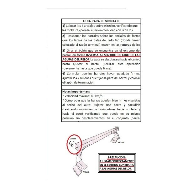 - Contenido: 2 Barras, 4 Anclajes, 4 tapas plásticas e instructivo de colocación.