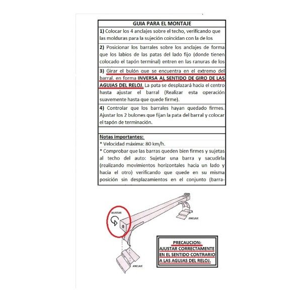 - Contenido: 2 Barras, 4 Anclajes, 4 tapas plásticas e instructivo de colocación.